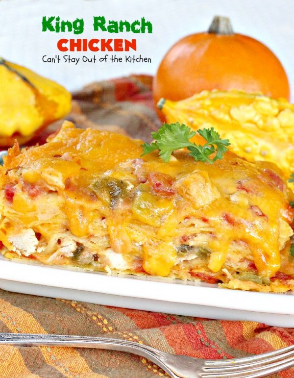 King Ranch Chicken is one of our favorite Tex-Mex entrees. It’s perfect for company dinners or potlucks.