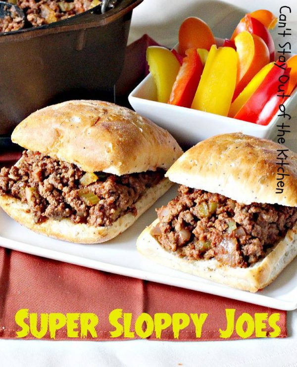These tasty sandwiches are great for lunches or main dishes. Serve with your favorite veggies and sides. One of the things I like about Super Sloppy Joes is this recipe is not so goopy nor does it have too much liquid like some recipes do.