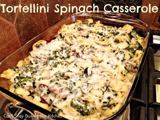Tortellini Spinach Casserole | Can't Stay Out of the Kitchen | this delicious #pasta entree is incredibly mouthwatering. It's filled with #spinach, several kinds of #cheese & cheese #tortellini. It's terrific for #MeatlessMondays as well as company. #mushrooms #casserole
