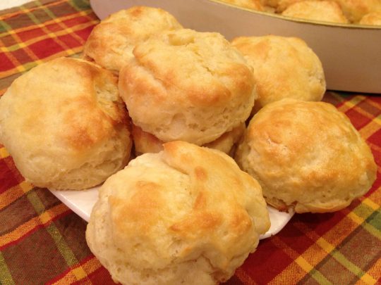 Here’s another look at the texture and height of Buttermilk Biscuits. They are great served with apple butter or jam, too.