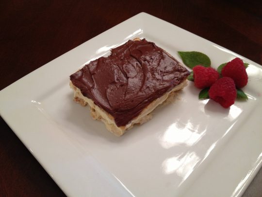 This has been one of our favorites for years! I microwave the frosting about 45 seconds and then pour it over the graham crackers…really easy. The frosting sets up in the refrigerator.
