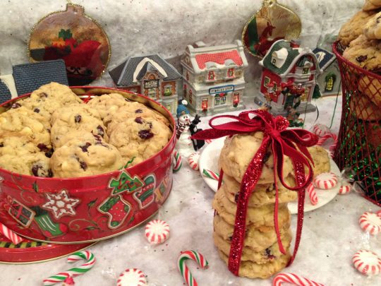 White Chocolate and Cranberry Cookies fit well in cookie tins if you want to ship them to friends or family.
