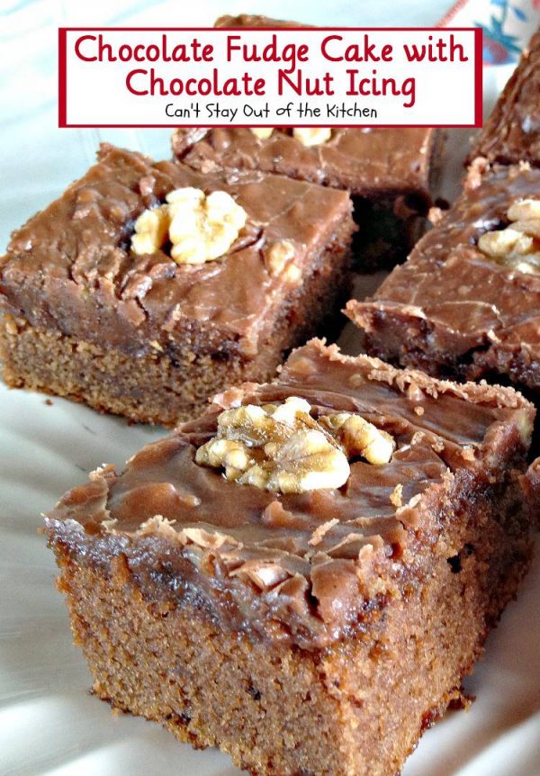 The ingredients in this chocolatey, fudgy cake are partially cooked on the stove before baking in the oven. Then the hot cake is topped with a fudge-type icing that includes chopped walnuts. Spectacular is an understatement! It is just incredibly irresistible.
