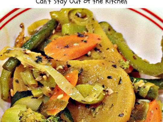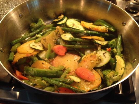 You can use different veggies if you prefer, but I recommend trying golden beets this way sometime. I would not recommend regular beets as they will probably bleed all over the other veggies.