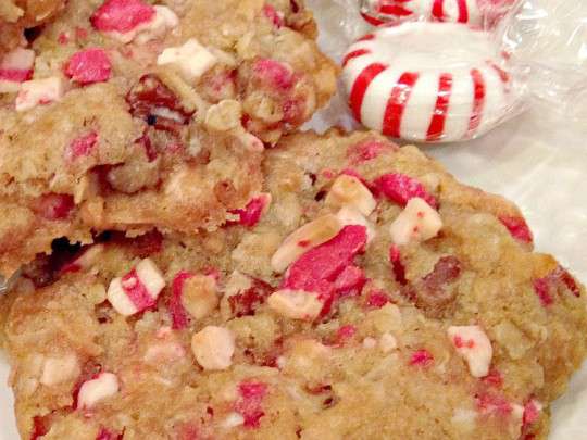 Delicious oatmeal cookie filled with pecans, coconut and Andes peppermint crunch baking chips. Great for holiday baking including Valentine's Day.