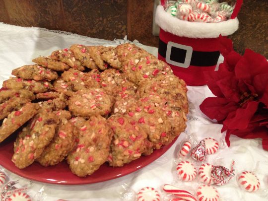 I recently remade these cookies (December 2016) for our Christmas cookie baking this year and took a few new pictures. These cookies have always been some of my favorites. If you enjoy peppermint, you’ll love this take on oatmeal cookies!