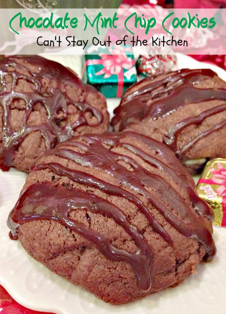 Chocolate Mint Chip Cookies are awesome for holiday baking and Christmas Cookie Exchanges. These wonderful chocolate cookies have a minty flavor due to mint chocolate chips in the cookie and a Chocolate Mint Glaze on top. If you're looking for a chocolate fix, this dessert is right up your alley!