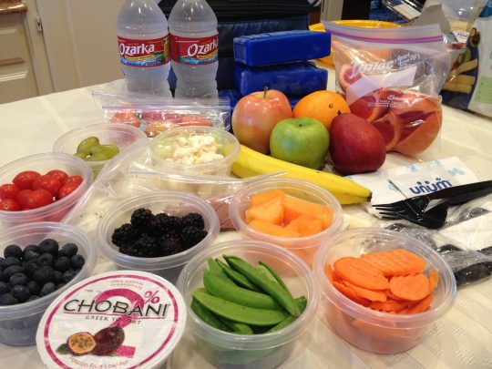 1) Consider investing in a good insulated lunch tote large enough to provide snacks for several meals