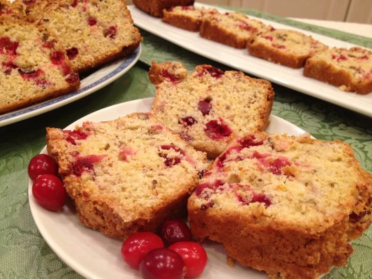 This is a terrific sweet bread and it’s not too difficult to make either. Consider making this for your holiday breakfasts when cranberries are in season and the kids are home from school. Or, do what I do–freeze cranberries and you can enjoy this great loaf any time of the year!