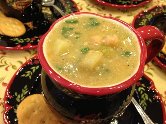 Chicken-Chickpea-Potato Soup tastes spectacularly. It is amazing comfort food.