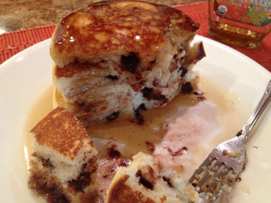 When I turned the pancakes over the chocolate chips didn’t stick to the bottom of the pan and make a mess.