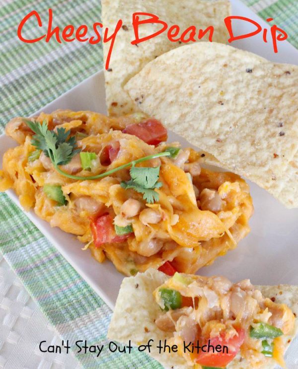 Cheesy Bean Dip is a terrific appetizer for any potluck or tailgating party.