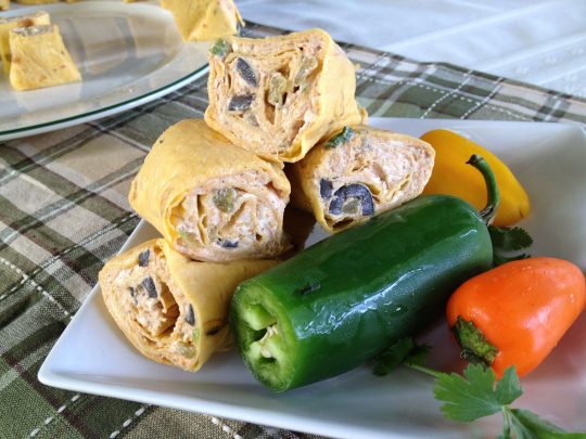 It’s really hard to eat only one! Fiesta Pinwheels are a delightful appetizer for watching sporting events on television. They may even make the news more palatable!