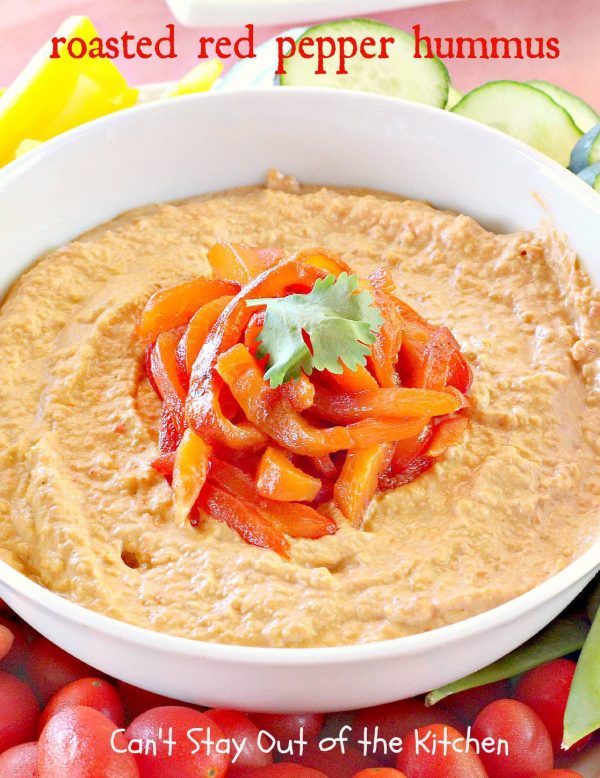 Roasted Red Pepper Hummus | Can't Stay Out of the Kitchen | this is one of the most delectable #hummus #recipes on the planet! It is absolutely succulent & amazing. It's a wonderful treat with #VeggieDippers if you're looking for a #healthy, #LowCalorie, #GlutenFree & #Vegan snack. #appetizer #tailgating #RoastedRedPepperHummus #VeganAppetizer #GlutenFreeAppetizer
