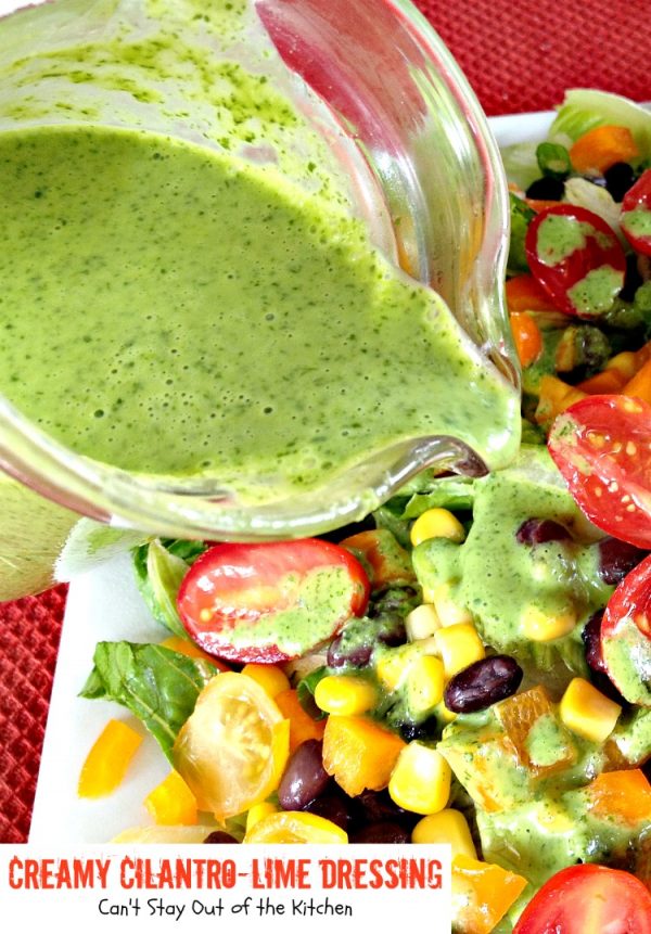 Creamy Cilantro Lime Dressing can be served over any kind of salad. But it’s especially nice over Tex-Mex salads.