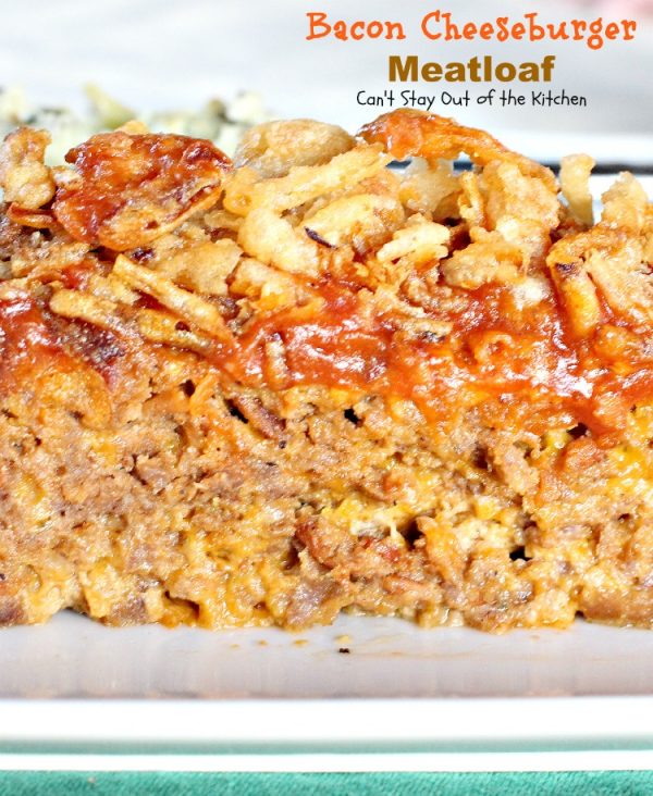While Bacon Cheeseburger Meatloaf is high in calories it’s also very high in taste. This meatloaf is succulent and mouthwatering. We loved the addition of bacon, cheese and French fried onions to meatloaf. It was exceptionally good.