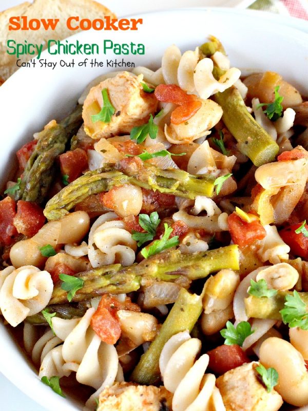Slow Cooker Spicy Chicken Pasta is so tasty. It’s a great meal to serve on cold, winter nights.