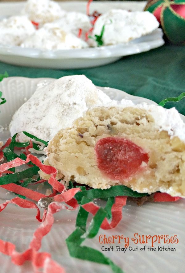 I’m ready to break out a glass of milk and power down these cookies! Cherry Surprises have always been one of our most requested Christmas cookies!