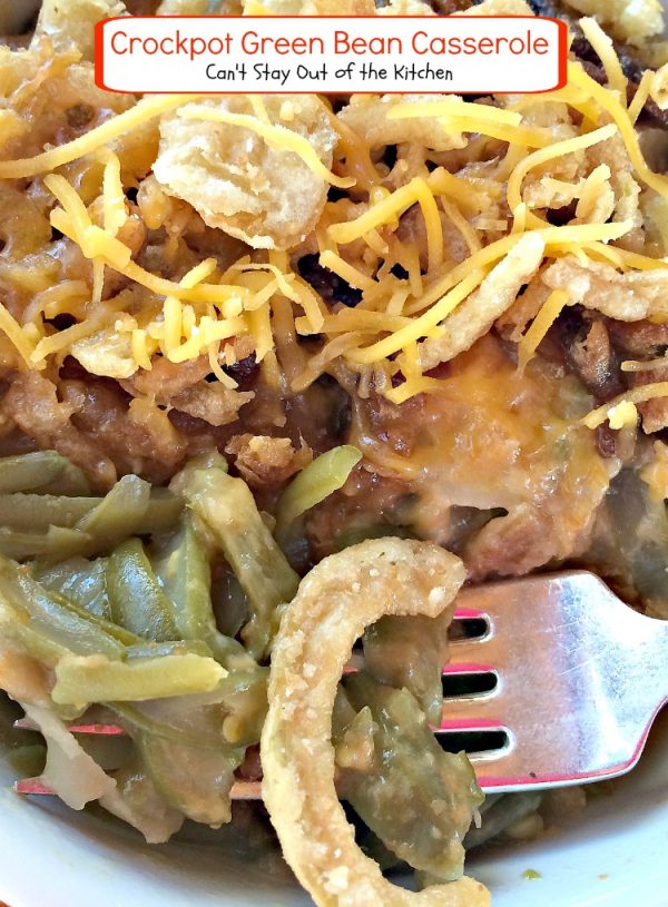 Here’s a forkful of Crockpot Green Bean Casserole. Ummmmm, delicioso!