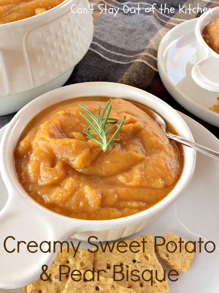 Creamy Sweet Potato and Pear Bisque is thick and creamy and tastes heavenly.