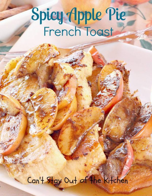 Apple Pie French Toast is absolutely mouthwatering. So drool worthy. Unbelievably sensational. Such comfort food. I love this delicious Apple Pie French Toast recipe! A few weeks ago I was in the mood for French toast. I wanted to serve it with sauteed apples and maple syrup rather than just plain with maple syrup. I concocted this delicious recipe that uses lots of spices in the apples, as well as in the French toast batter.