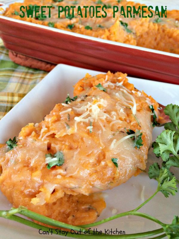 Sweet Potatoes Parmesan is perfect for holiday meals like Thanksgiving, Christmas or Easter. But we enjoy it for regular dinner menus too.
