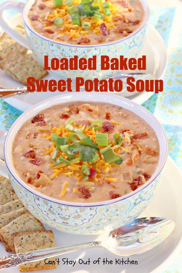 I’m always looking for ways to use sweet potatoes and I had a lot in my refrigerator that I needed to use up a couple of weeks ago. I wondered if I could make up a soup that would be similar to Loaded Baked Potato Soup but use sweet potatoes instead. I hit pay dirt with this combination of flavors and texture. Loaded Baked Sweet Potato Soup is sensational and I think you’ll agree with me if you give it a try.