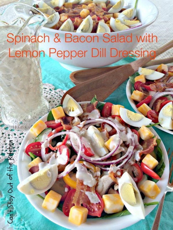 Doesn’t Spinach and Bacon Salad with Lemon Pepper Dill Dressing look wonderful?
