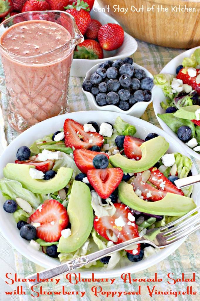 If you’re looking for a tasty salad recipe and you don’t mind mixing fruits and veggies, then give Strawberry Blueberry Avocado Salad with Strawberry Poppyseed Vinaigrette a try sometime. I would have added a little diced red onion to the salad, but my husband prefers that I leave it off. That would give the salad a little more bite.