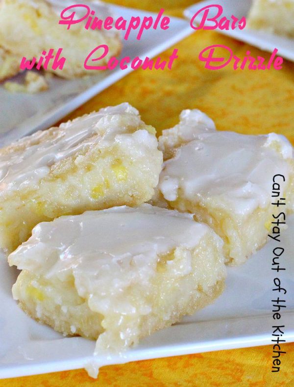 Pineapple Bars with Coconut Drizzle | Can’t Stay Out Of The Kitchen | terry1954