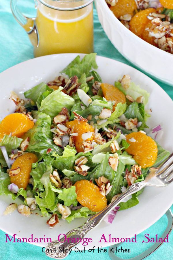 Mandarin Orange Almond Salad is a tasty salad for company or anytime you’re in the mood for salad.