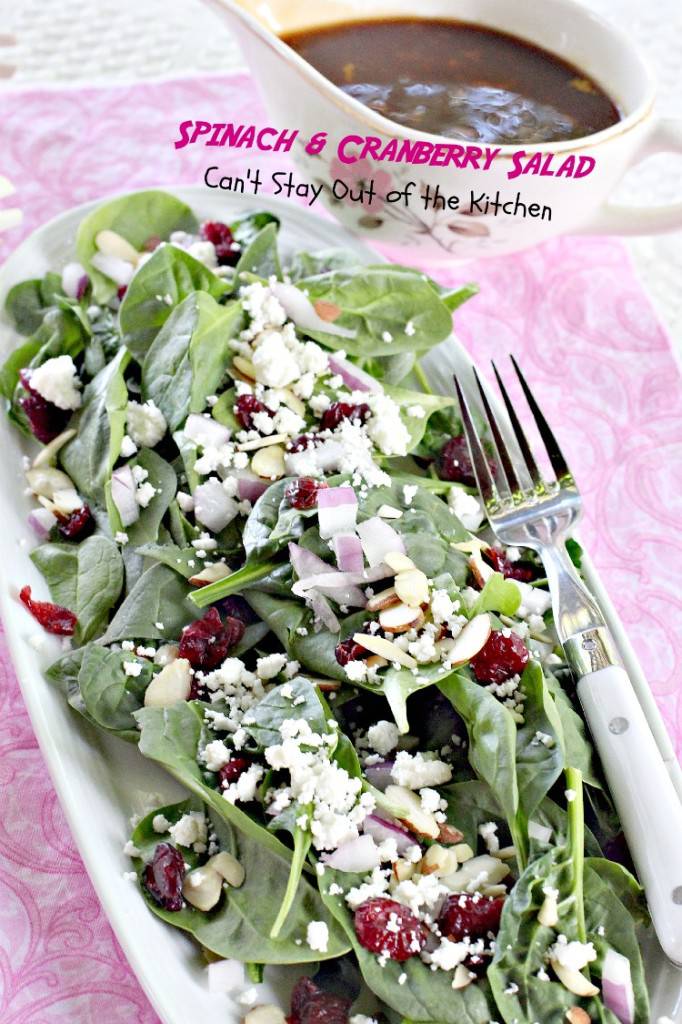 Spinach and Cranberry Salad is so quick and easy to make up. It’s terrific for holidays like Easter, Mother’s Day or Father’s Day.