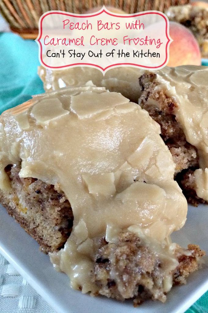 Peach Bars with Caramel Creme Frosting are rich, decadent and totally worth it!