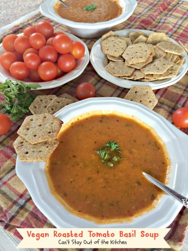 Vegan Roasted Tomato Basil Vegetable Soup – Can't Stay Out Of The Kitchen