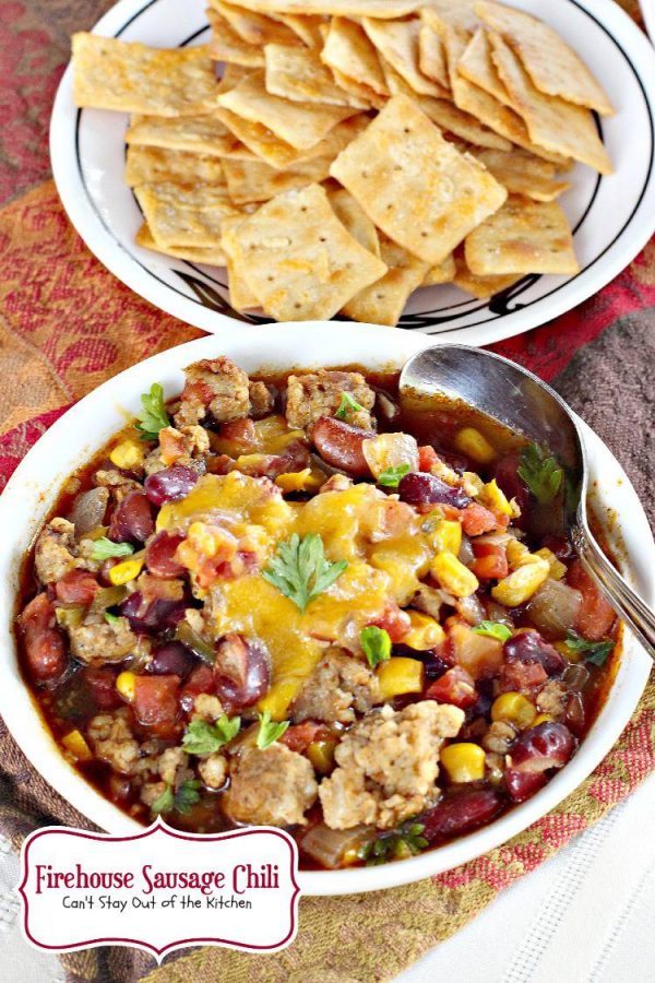 If you’re looking for a new chili recipe, I highly recommend trying out a batch of Firehouse Sausage Chili. It’s so delicious you may have a hard time sharing a bowl with your family! 🙂