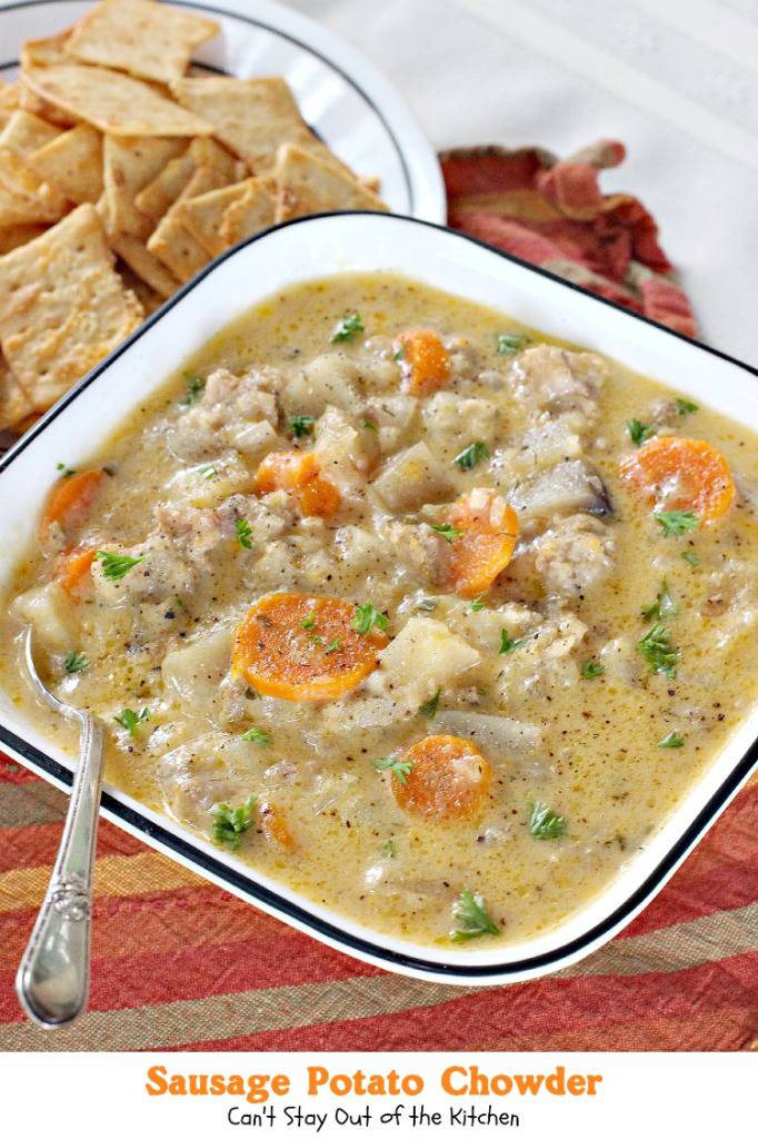 Sausage Potato Chowder is mouthwatering comfort food in the fall when nights are cooler.