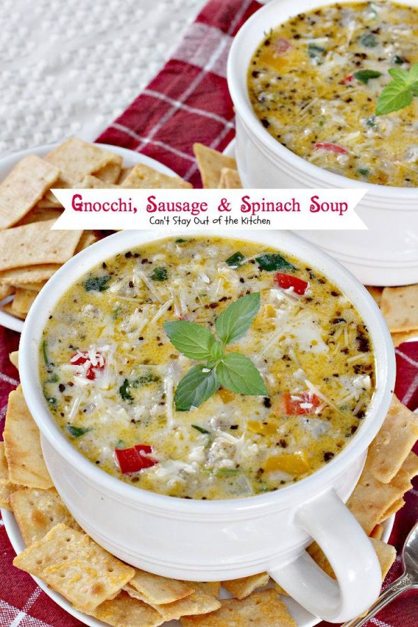 Gnocchi, Sausage and Spinach Soup is the ultimate in comfort food during cooler fall and winter nights.
