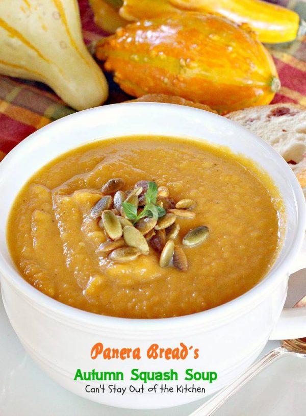 […] Panera Bread’s Autumn Squash Soup (cantstayoutofthekitchen.com) […]