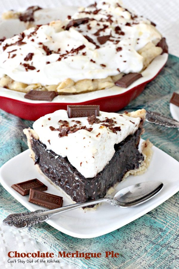 Chocolate Meringue Pie is so scrumptious. It’s always been a holiday favorite in our family.