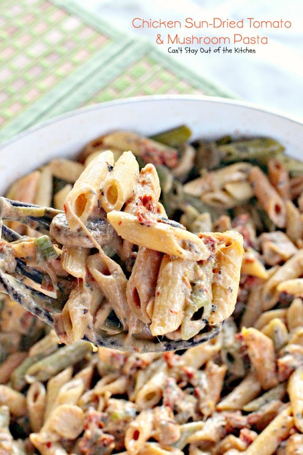 Every bite of Chicken Sun-Dried Tomato and Mushroom Pasta is amazingly good.