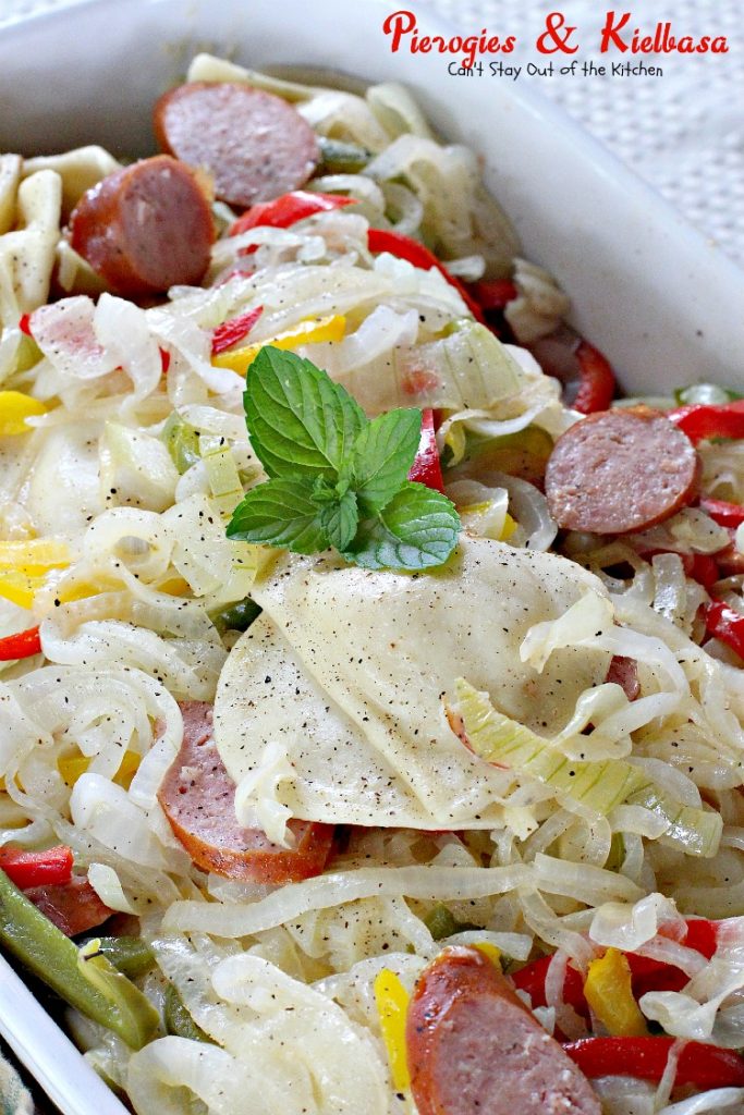 Pierogies and Kielbasa is great for potlucks and other family gatherings.
