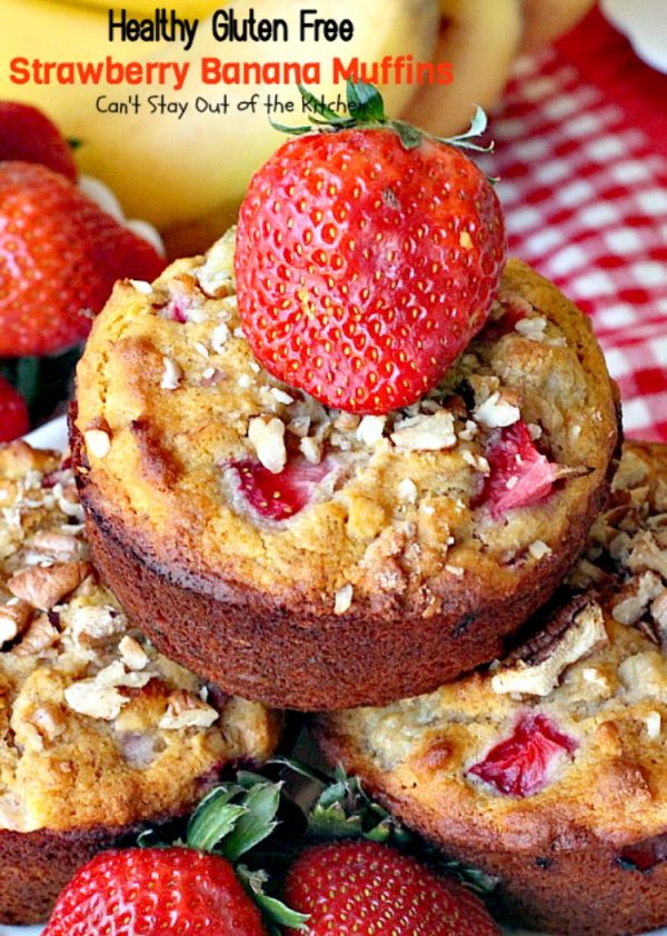 Healthy Gluten Free Strawberry Banana Muffins are lovely with fresh strawberries and Ham and Cheese Breakfast Muffins.