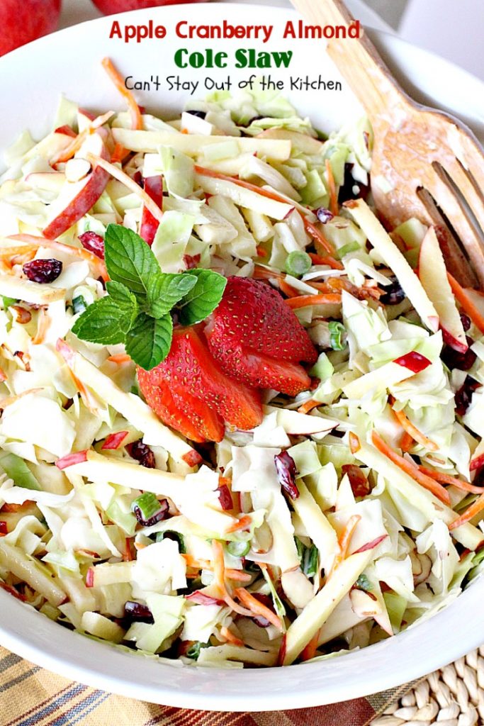 Every spoonful of Apple Cranberry Almond Cole Slaw is so appetizing. This is great served with Easy Grilled Chicken and Hearty Cowboy Baked Beans.
