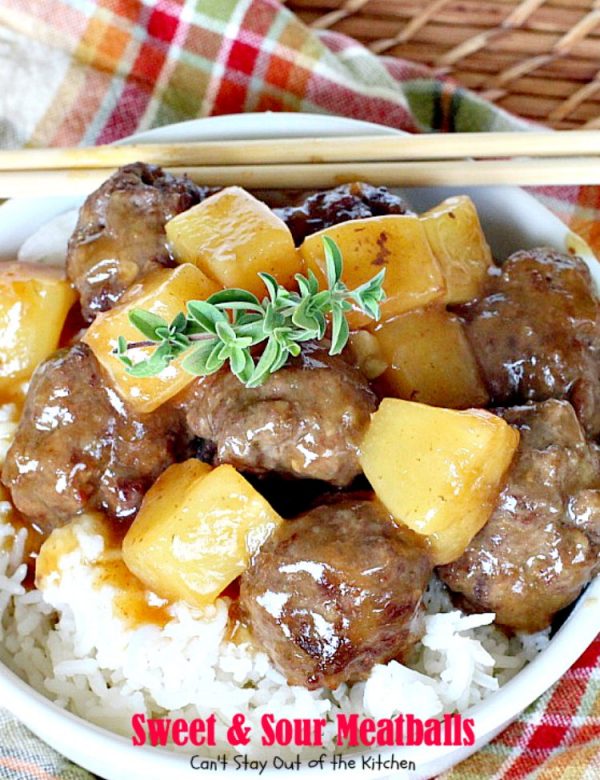 Sweet and Sour Meatballs are awesome. 😮 This tasty entree makes an easy main dish that can be served over rice or noodles. I love meatballs and I have some great recipes for Swedish Meatballs, Melt-In-Your-Mouth Meatballs, Pizza Meatballs, Waikiki Meatballs and Meatballs for spaghetti sauce. And, for those of you who are meatball lovers like me, you will love this recipe! The sweet and sour sauce is savory and delicious. It’s just one of those dishes you can’t get enough of.