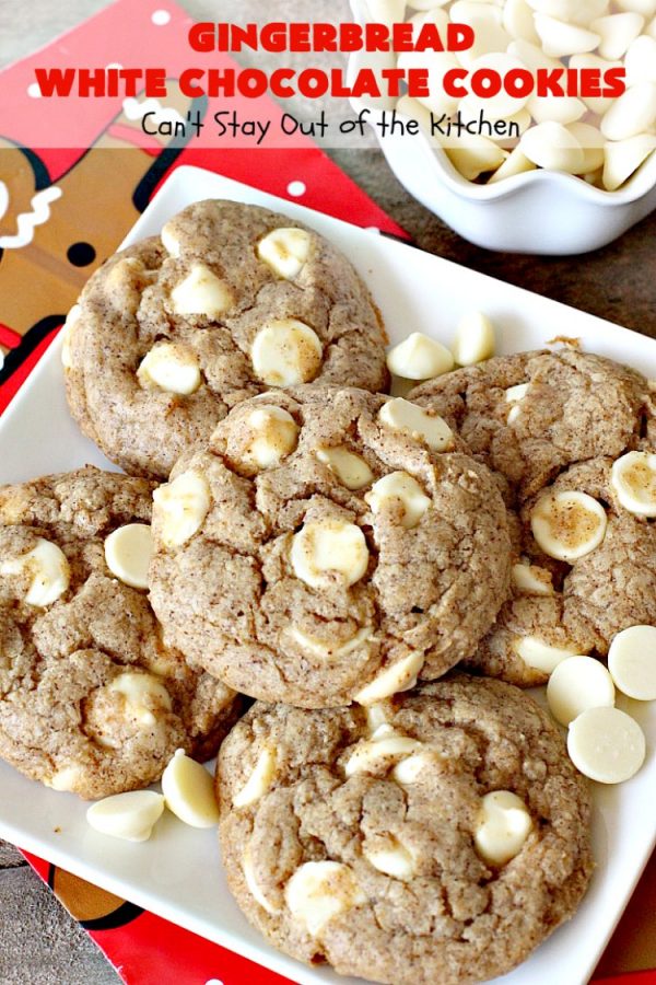 Gingerbread White Chocolate Cookies are perfect for Christmas Cookie Exchanges or any party during the holidays.