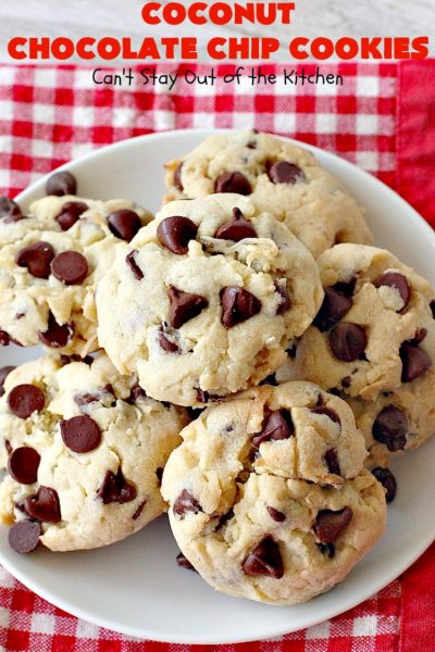 Coconut Chocolate Chip Cookies are fantastic. I’m always interested in trying new recipes–especially when it comes to cookies! This delightful cookie has two of my favorite items: coconut AND chocolate chips. Yay! And, together, they are out of this world!