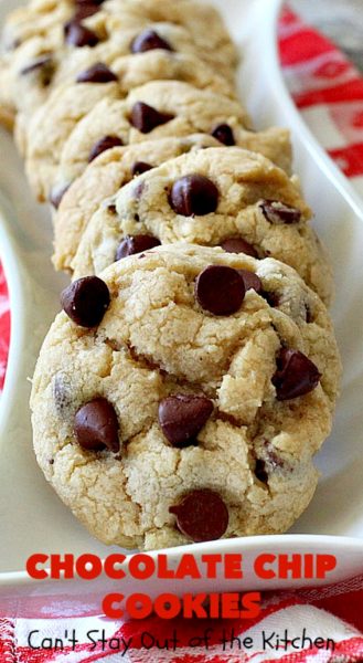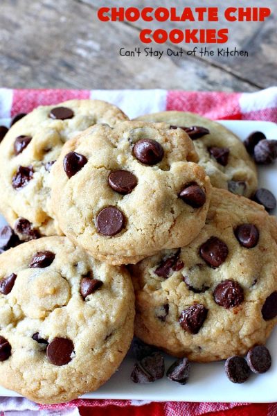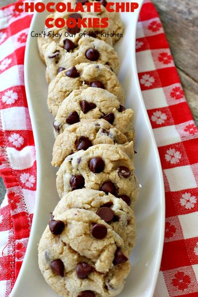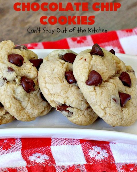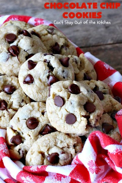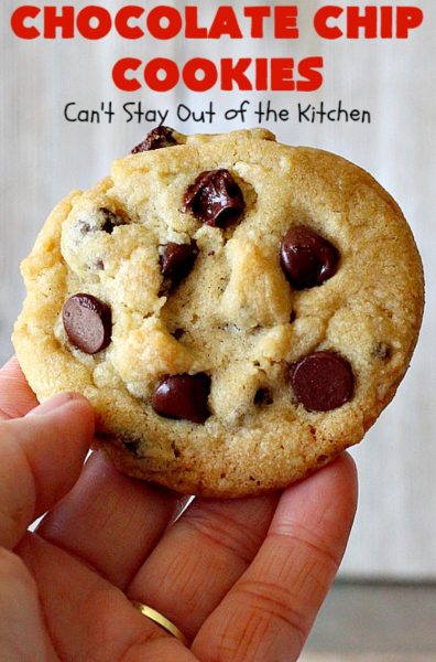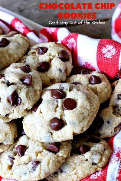 Chocolate Chip Cookies | Can't Stay Out of the Kitchen | this is our favorite #chocolatechipcookie #recipe. It's loaded with #chocolate chips and comes out just perfectly. Terrific for #tailgating, #holiday parties or potlucks. #dessert #cookies #chocolatedessert