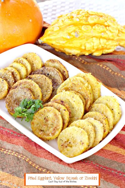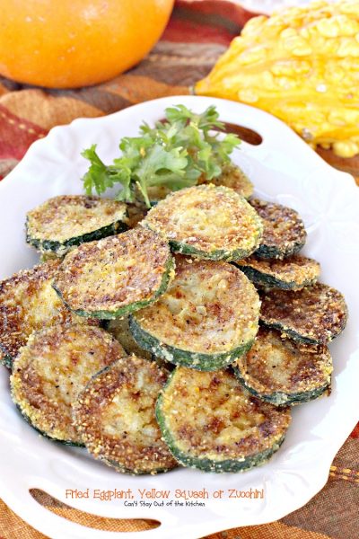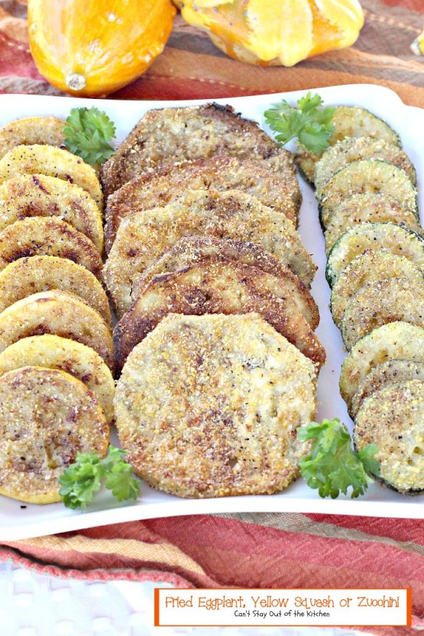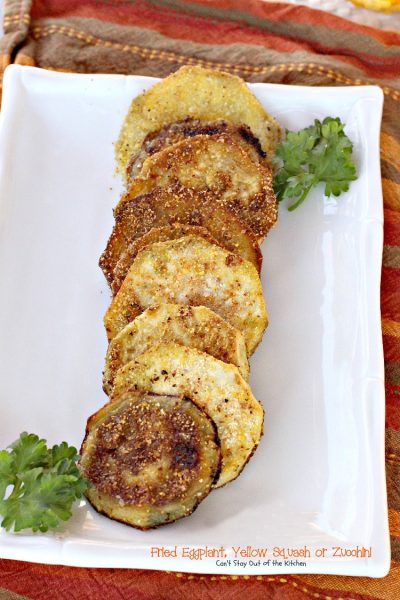 I have to admit Fried Eggplant, Yellow Squash or Zucchini is one of my favorite ways to eat these three veggies!