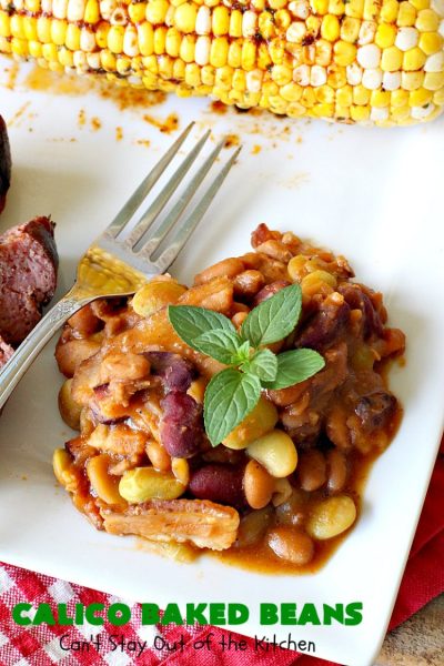 If you enjoy Baked Beans you’ll love Calico Baked Beans! It’s wonderful served with Grilled Kielbasa and Roasted Paprika Corn.