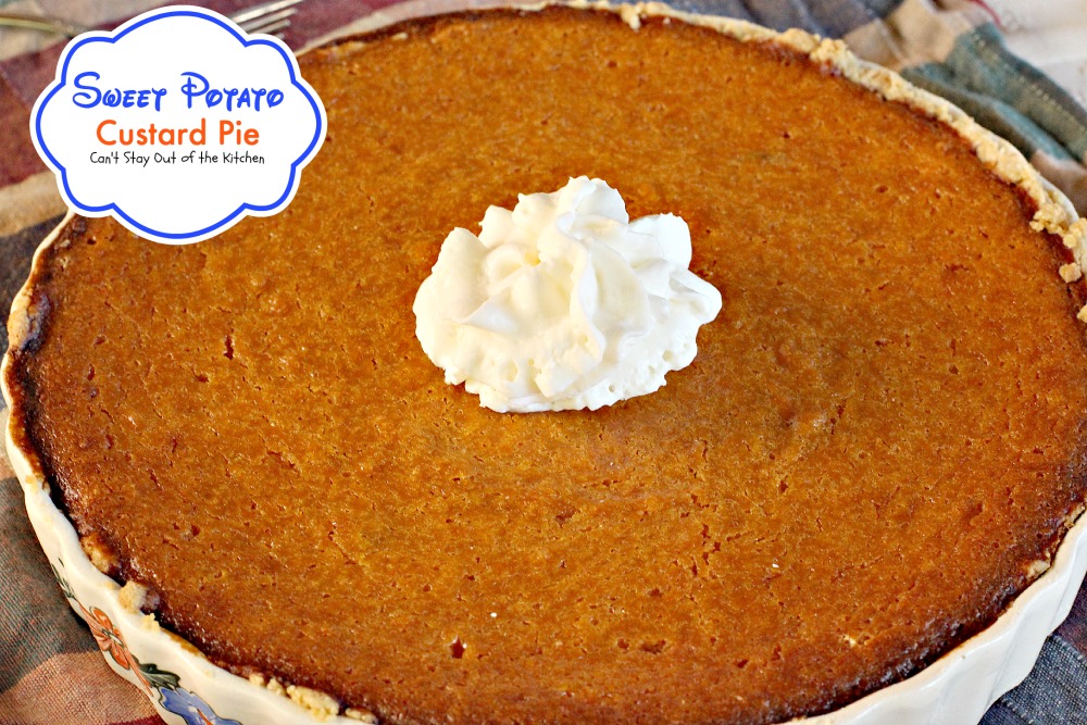 Sweet Potato Custard Pie | Can’t Stay Out of the Kitchen | this #pie is to die for! It is so spectacular you will never want to make #sweetpotatopie any other way! This one has #marshmallowcreme and #almond extract. Make this instead of #pumpkin pie for #Thanksgiving! #dessert